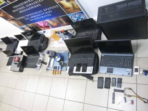 φορητοί ηλεκτρονικοί υπολογιστές, σκληροί δίσκοι- usb , κινητά τηλέφωνα, φωτογραφικές μηχανές, τα οποία θα αποσταλούν για εργαστηριακή εξέταση.