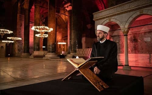 «Η σημερινή ανάγνωση αποσπασμάτων του Κορανίου εντός της Αγίας Σοφίας, ενός οικουμενικού μνημείου που προστατεύεται από την UNESCO ως τμήμα της παγκόσμιας πολιτιστικής κληρονομιάς και λειτουργεί ως μουσείο από το 1935, συνιστά απαράδεκτη απόπειρα αλλοίωσης του μνημειακού χαρακτήρα της αλλά και πρόκληση στο θρησκευτικό συναίσθημα των απανταχού Χριστιανών», τονίζει σε ανακοίνωσή του το υπουργείο Εξωτερικών.