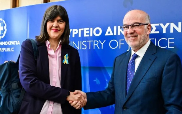 Ολοκληρώθηκε η συνάντηση της επικεφαλής της Ευρωπαϊκής Εισαγγελίας, Λάουρας Κοβέσι, με τον υπουργό Δικαιοσύνης Γιώργο Φλωρίδη στο υπουργείο Δικαιοσύνης, η οποία διήρκεσε περίπου 30 λεπτά και πραγματοποιήθηκε σε θετικό κλίμα.