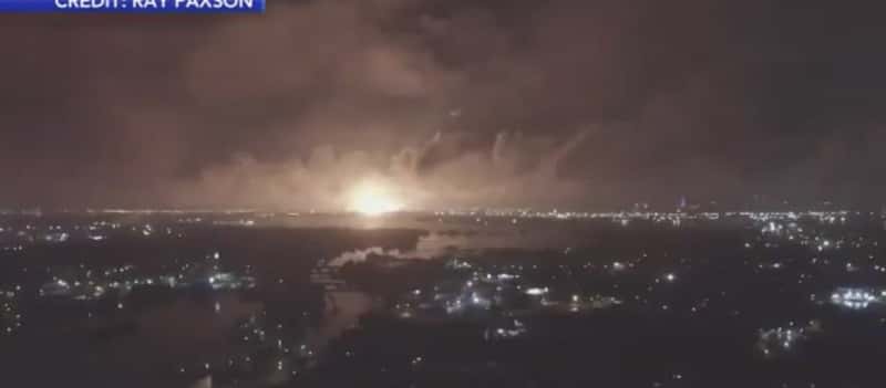 Βίντεο και φωτογραφίες που ανέβηκαν στα social media απαναθάτισαν την έκρηξη που φαίνεται να κάνει τη «νύχτα μέρα» αλλά και τη στήλη πυκνού καπνού που υψώνεται αμέσως μετά.