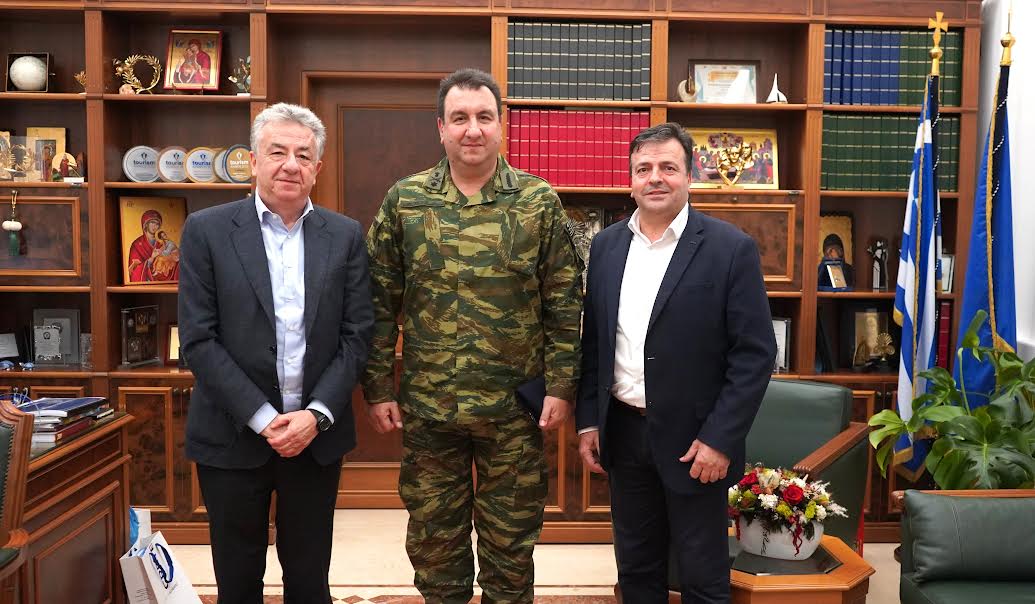 Εθιμοτυπική επίσκεψη στον Περιφερειάρχη Κρήτης Σταύρο Αρναουτάκη πραγματοποίησε σήμερα Πέμπτη ο νέος διοικητής της 44ης Στρατιωτικής Διοίκησης ΤΑΛΩΣ (πρώην ΣΕΑΠ) Ταξίαρχος Φώτιος Αρμπής.