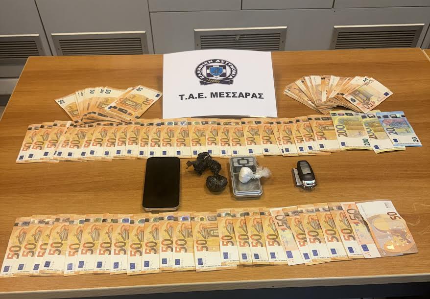 Ενας 25χρονος συνελήφθη στη Μεσαρά για παραβάσεις νομοθεσίας περί Ναρκωτικών και στην κατοχή του βρέθηκαν και κατασχέθηκαν συσκευασίες που περιείχαν συνολικά -29,2- γραμμάρια κοκαΐνης, μικροποσότητα κάνναβης, ζυγαριά ακριβείας και χρηματικό ποσό -7.920- ευρώ.