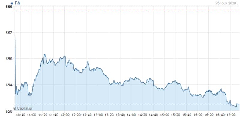 Ειδικότερα, ο Γενικός δείκτης έκλεισε με απώλειες 2,17% στις 650,60 μονάδες, ενώ σήμερα κινήθηκε μεταξύ 650,23 μονάδων (-2,22%) και 661,39 μονάδων (-0,54%). Ο τζίρος έφτασε στα 50,6 εκατ. ευρώ και ο όγκος στα 30,7 εκατ. τεμάχια, ενώ μέσω προσυμφωνημένων συναλλαγών διακινήθηκαν 426 χιλ. τεμάχια.