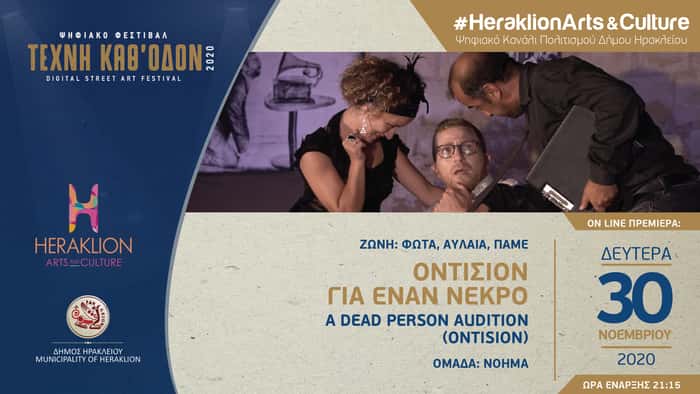 Η ομάδα εικαστικών και παραστατικών τεχνών NOHMA παρουσιάζει στο κανάλι πολιτισμού του Δήμου Ηρακλείου, Heraklion Arts & Culture τη μαύρη κωμωδία «Οντισιόν για έναν νεκρό».