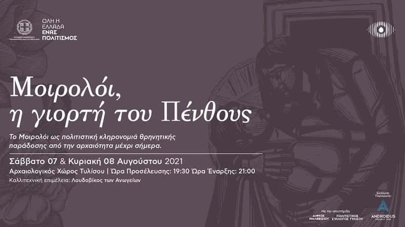 Στόχος της εκδήλωσης είναι να αναδειχθεί το μοιρολόι και η αποτύπωση του θρήνου σε ένα σύνολο εκφάνσεων, οι οποίες υπογραμμίζουν την επιτελεστική, ψυχολογική και πολιτιστική διάσταση του.