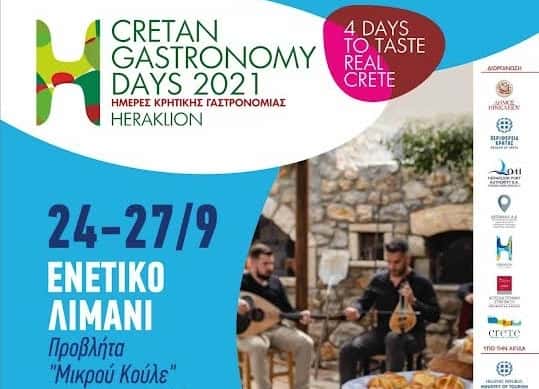 Ο Δήμος Ηρακλείου οργανώνει τις εκδηλώσεις «Ηράκλειο, Μέρες Γαστρονομίας 2021/Heraklion Gastronomy Days 2021» από την Παρασκευή 24 μέχρι και την Δευτέρα 27 Σεπτεμβρίου (Παγκόσμια Ημέρα Τουρισμού). Πρόκειται για την 3η διοργάνωση από το 2018 μέχρι σήμερα, μετά από μία παύση το 2020 λόγω της πανδημίας COVID-19.