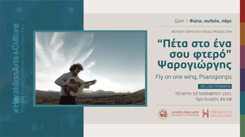 Με την συναυλία του Γιώργη Ξυλούρη - Ψαρογιώργη «Πετά στο ένα σου φτερό» συνεχίζονται οι προβολές στο ψηφιακό κανάλι πολιτισμού του Δήμου Ηρακλείου – Heraklion Arts & Culture, την Τετάρτη 17 Νοεμβρίου, στις 21.30, στον παρακάτω σύνδεσμο: https://youtu.be/hHQqzsagk1s. Μετά την πρώτη προβολή της, θα παραμείνει διαθέσιμη στη Ζώνη θέασης «Φώτα, Αυλαία, Πάμε»