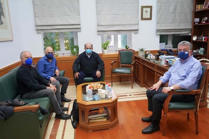 Στη συνάντηση, ο Μύρων Μιχαηλίδης, ο Ραφαήλ Πυλαρινός, Αναπληρωτής-Εκτελεσ τικός Διευθυντής ΠΣΚΗ και ο συνθέτης Δημήτρης Μαραμής, συζήτησαν με τον Περιφερειάρχη για τις δυνατότητες συνεργασίας της Περιφέρειας με το Πολιτιστικό Συνεδριακό Κέντρο Ηρακλείου.