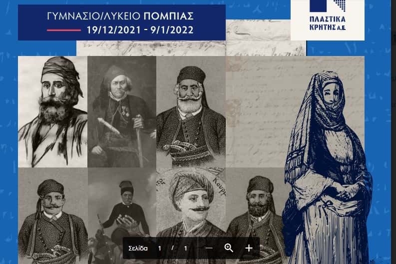 Με τη συνδιοργάνωση της Περιφέρειας Κρήτης, η Κοινότητα Πόμπιας και η Εταιρία Κρητικών Ιστορικών Μελετών (Ε.Κ.Ι.Μ.) παρουσιάζουν την περιοδική έκθεση: «1821 Η ΚΡΗΤΗ ΣΤΗΝ ΕΛΛΗΝΙΚΗ ΕΠΑΝΑΣΤΑΣΗ» στο ιστορικό κτίριο του Γυμνασίου–Λυκείου Πόμπιας, Δήμου Φαιστού την Κυριακή 19 Δεκεμβρίου 2021 στις 13:00. Η έκθεση θα διαρκέσει έως την Κυριακή 09 Ιανουαρίου 2022.