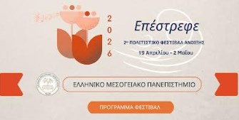 Μετά την επιτυχημένη διοργάνωση του 1ου Πολιτιστικού Φεστιβάλ Άνοιξης, το Ελληνικό Μεσογειακό Πανεπιστήμιο (ΕΛΜΕΠΑ) συνεχίζει τη δημιουργική έκφραση και την πολιτιστική του παρουσία με τη δεύτερη διοργάνωση του Φεστιβάλ.